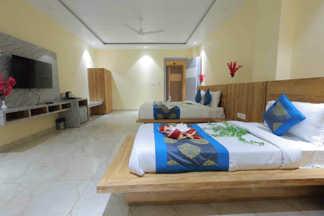 Hotel Shiv Vilas Palace, a spectacular luxurious Hotel in the city of "Birds", Located on NH-11, Saras Chauraha, Agra Road, Bharatpur (Raj.) INDIA, in the area of Famous Keoladeo National Park Just 1.5 KM. Hotel Shiv Vilas Palace is a four stars elegant hotel and ideal place for unique moments of relaxation. The Hotel Built in 2015 is the meeting point of tradition and modern design as well a big area of garden with local flowers and trees. The hotel has an onsite Rooftop Restaurant" Machaan", Rest areas, free wifi, ping pong table, elevator and also onsite free parking. The hotel is a secure luxurious place to stay, efficiently backed by our dedication in personalized service making it ideal for couples, families and nature lovers. The Rooms its Deluxe, Luxury and suites (89 in total) combine luxurious comfort. Hotel Also has a Big Banquet Hall for perfect destination wedding and a Conference Hall